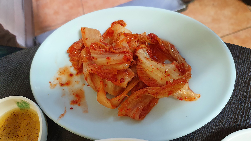 적당하게 익은 김치를 주는데, 왜 주나 했더니 다들 곱창에 넣어 먹더군요.