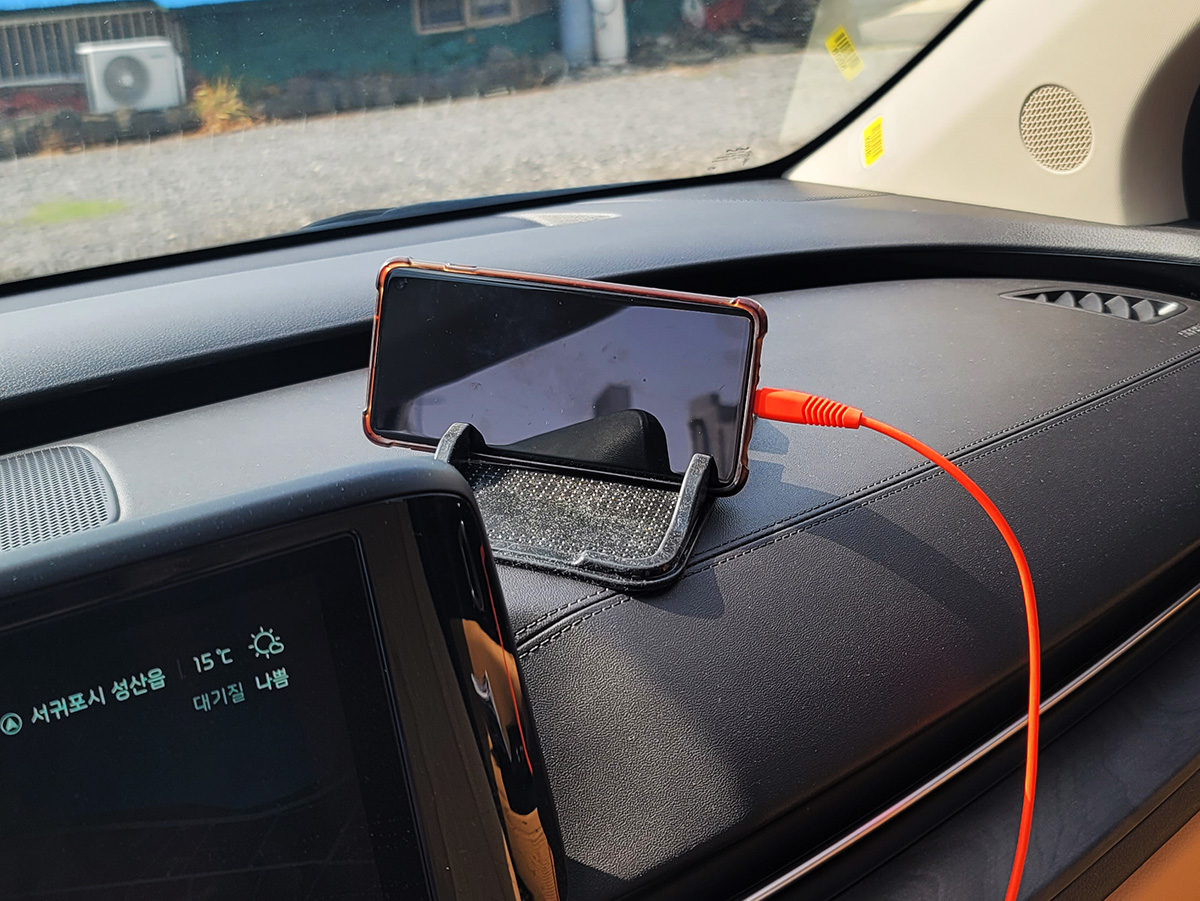 이거 챙길 때 집사람이 유난 떤다고 뭐라 했지만 막상 제주도가서 집에서 타던차처럼 타고 다니니 뭐라 하지 않더군요. 만약 제주도가서 카니발 렌트카 빌렸을 때 T맵사용하려면 다이소가서 휴대폰 거치대 하나 사갖고 가시길 추천 드립니다. 2,000원 주고 구매한 거치대인데 아주아주 편리하게 잘 사용하고 있습니다. 그리고 이번에 나온카니발은 송풍구거치대도 사용하기 불편하고 휴대폰 네비를 이용할 때 최적의 위치는 없는듯... 이게 최선으로 사용하는 것 같아요.