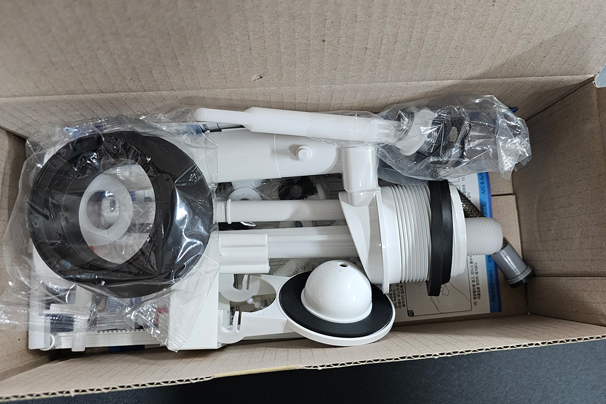 현재 기준(2024년 3월) 유통되는 부품은 약간의 차이가 있습니다. 볼탑의 길이가 약간 변경되었으며, 플러시밸브 및 기타 부품의 구성변화는 없는데, 볼탑의 길이가 바뀐 이유는 아무래도 절수인증으로 인해 물 사용량을 6리터로 제한하기 위해 변경 시킨 것 같습니다.