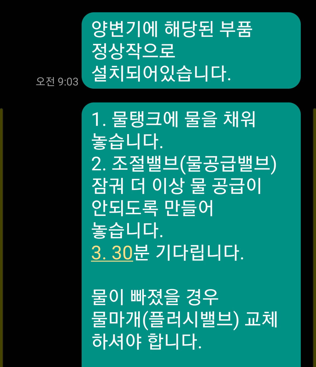 그리고 어떤 일부들은 어떤 부품의 문제가 있는지 모른채 무조건 볼탑(필밸브)에서 누수가 되고 있으니 볼탑만 구매해오면 교체해준다고 해서 볼탑을 구매해 놓았더니 아파트관리실 직원이 볼탑 교체하고 볼탑에서 또 똑같이 물이 스며나오니 한다는 말 "이거 불량입니다. 구매했던 곳에 물건 바꿔달라하세요. 불량제품을 구매해 한번에 끝낼 작업을 두번 세번 오게 하네요." 이렇게 하면 당연히 구매자 입장에선 판매처를 나무랄수밖에 없습니다.