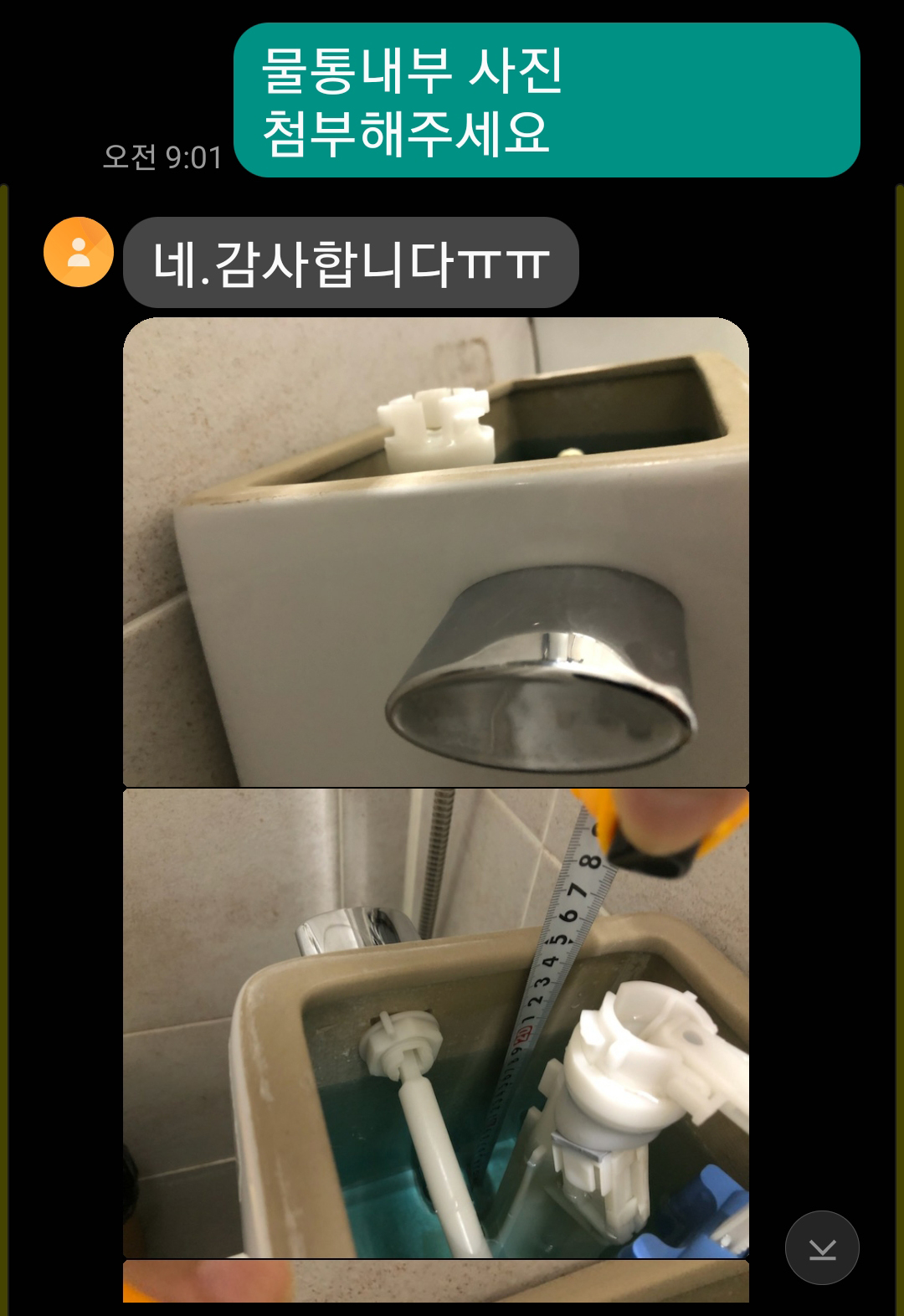 양변기부속을 교체 해줄테니 구매해와라?