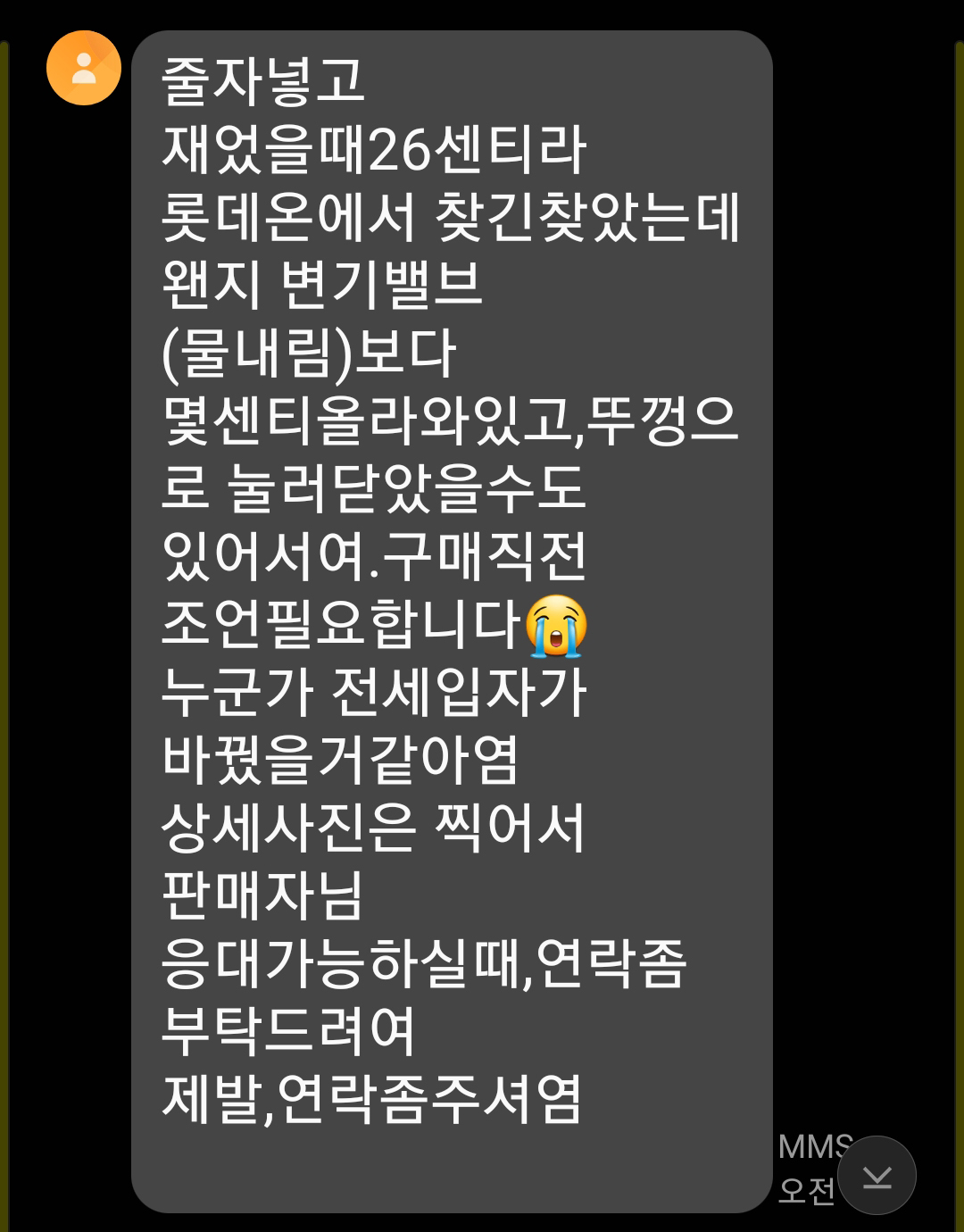 읭??? 대림바스 제품이 맞고 양변기 품번에 맞는 부품이 잘 설치되어 있는데 물품을 구매하려는 구매자는 단지 물통에서 볼탑이 살짝 튀어 올라와 간섭이 생긴다고 생각을 했던 것 같습니다. 부품구조에 대해 한번 더 생각해본다면 물탱크 뚜껑만 뒤집어 봐도 알텐데 안탑깝네요.(뚜껑을 뒤집어보면 움푹들어가 볼탑과 간섭이 없음) 혹시 다른문제가 있을 까봐 추가로 안내해주기 위해 점검하는 방법을 문자로 보내줍니다.