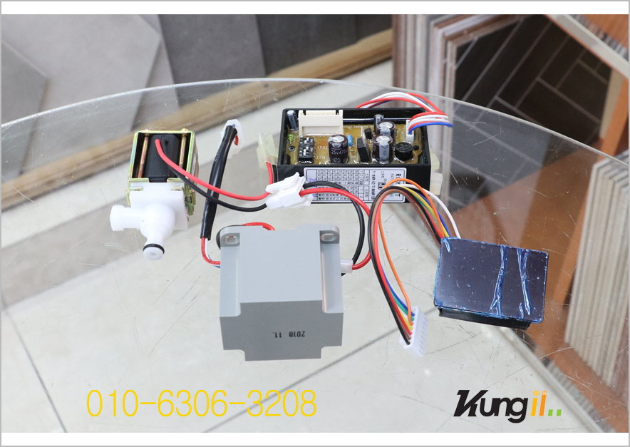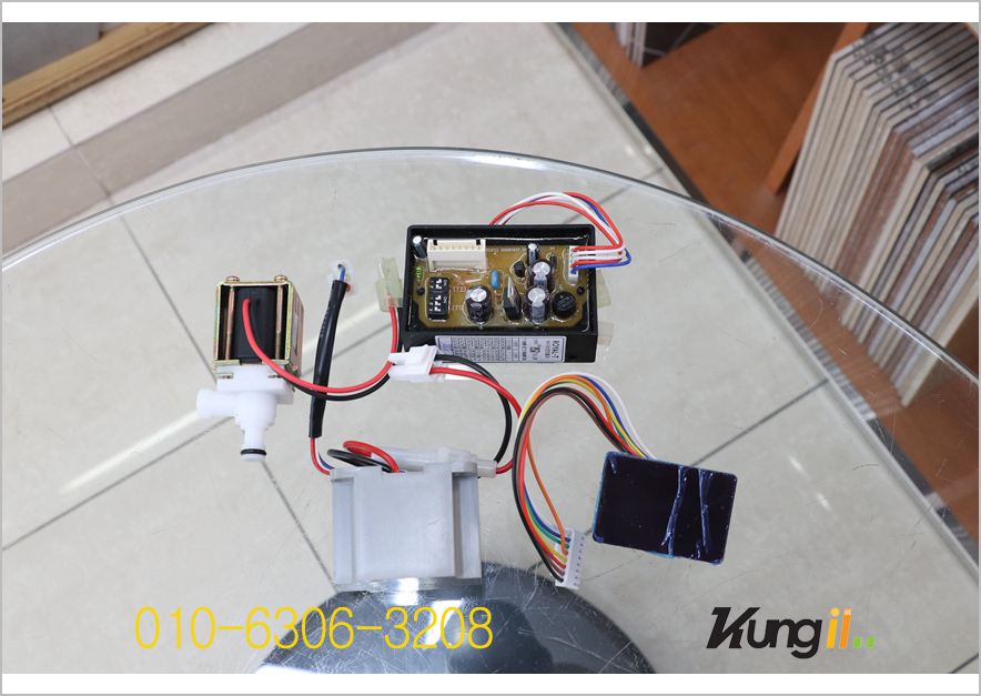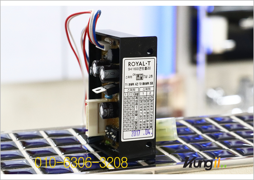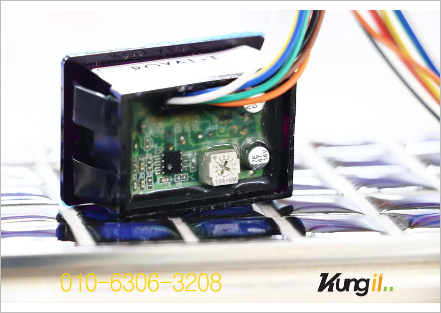 받아 사진에 나와있는 컨트롤러에서 솔밸브쪽으로 세척제어를 해주는 역할을 합니다. 로얄토토제품의 경우 세척시간 또는 예비세척을 조절할 수 있도록 제작되었습니다.