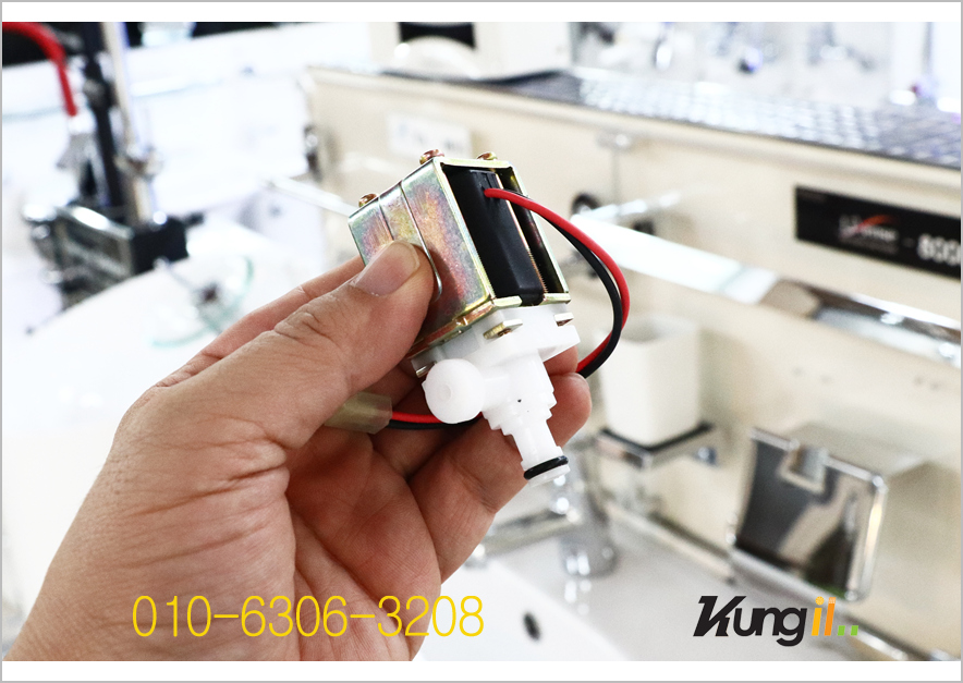 Royal toto 전기식 솔레노이드밸브 메인컨트롤러에서 신호를 받아 소변기세척을 할때 사용되는 물을 제어해주는 솔레노이드밸브 입니다.